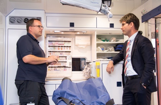 Begeistert zeigte sich der Politiker bei der anschließenden Besichtigung der Rettungswache auch von der technischen Ausstattung der Rettungsfahrzeuge. "Das sind fahrende Intensivstationen, mit denen wir das Maximale, was außerhalb eines Krankenhauses geht, für unsere Patienten tun können.", erklärt Stefan Hardt, Wachenleiter in Itzehoe.