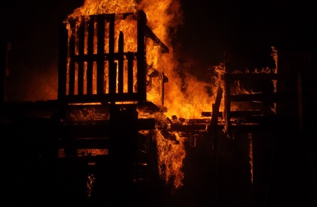 Gegen 22:30 Uhr rückten die 10 Einsatzkräfte das erste Mal aus. Auf dem umzäunten Gelände des Abenteuerspielplatzes brannte eine Holzkonstruktion.