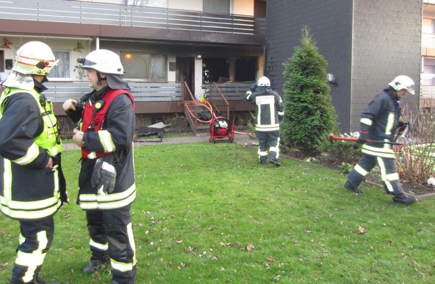Um 15.29 Uhr wurde die Feuerwehr Mülheim an der Ruhr zu einem Wohnungsbrand im Erdgeschoss eines Mehrfamilienhauses im Fulerumer Feld gerufen. Bereits auf der Anfahrt war eine starke Rauchentwicklung von der Rückseite des Gebäudes zu erkennen. Bei Eintreffen der ersten Kräfte stand die Wohnung in Vollbrand. Der Bewohner war bereits vor dem Gebäude und wurde umgehend durch den Rettungsdienst der Feuerwehr versorgt und in ein örtliches Krankenhaus gebracht. Weitere Bewohner hatten versucht über die Laubengänge das Haus zu verlassen. Auf Grund der Rauchentwicklung war dieses nicht möglich, so dass eine Menschenrettung über die Gebäudevorderseite mittels Drehleiter durchgeführt wurde. Diese Personen, darunter zwei Kinder, wurden nach Feststellung eines erhöhten Kohlenmonoxidgehalts im Blut, in Mülheimer und Oberhausener Krankenhäuser verbracht. Zeitgleich ging ein Trupp unter Atemschutz zur Brandbekämpfung mit einem C-Rohr in die Wohnung vor. Nach circa 20 Minuten war das Feuer unter Kontrolle, so dass eine Belüftung und Nachlöscharbeiten stattfinden konnten. Die vom Feuer betroffene Wohnung ist bis auf weiteres unbewohnbar. Nach Abschluss der Löscharbeiten wurde die Einsatzstelle an die Kriminalpolizei übergeben. (SDa)