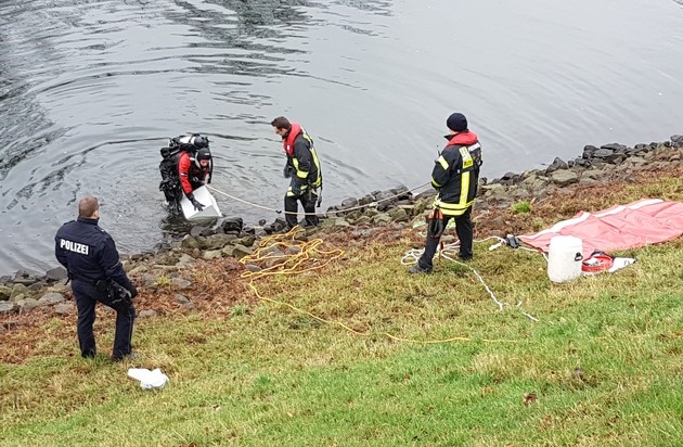 Am ersten Weihnachtsfeiertag um 12 Uhr erreichte die Leitstelle der Feuerwehr Mülheim ein Amtshilfeersuchen der Polizei Mülheim. Im Schifffahrtskanal der Ruhr unterhalb der Raffelberg-Schleuse wurden ein Tresor und zwei kleinere Geldkassetten gefunden. Die Gegenstände lagen in zirka zwei Meter Tiefe. Ein Feuerwehrtaucher begab sich zur Bergung der Gegenstände in das 6 Grad Celsius warme Wasser. Nach kurzer Zeit konnte der zirka 40 Kilogramm schwere Tresor geborgen werden. Für die Feuerwehr war der Einsatz schnell beendet, die Polizei hat die Ermittlungen zur Herkunft aufgenommen.