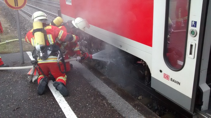 Gegen 06:00 Uhr bemerkte der Zugführer während der Fahrt eine starke Rauchentwicklung an seinem Fahrzeug. Er brachte den Zug daraufhin unplanmäßig am Haltepunkt Welschingen-Neuhausen zum Stehen und entdeckte einen Brand im Bereich einer Zugbremse. Unter Einsatz zweier Feuerlöscher konnte dieser aber umgehend gelöscht werden.