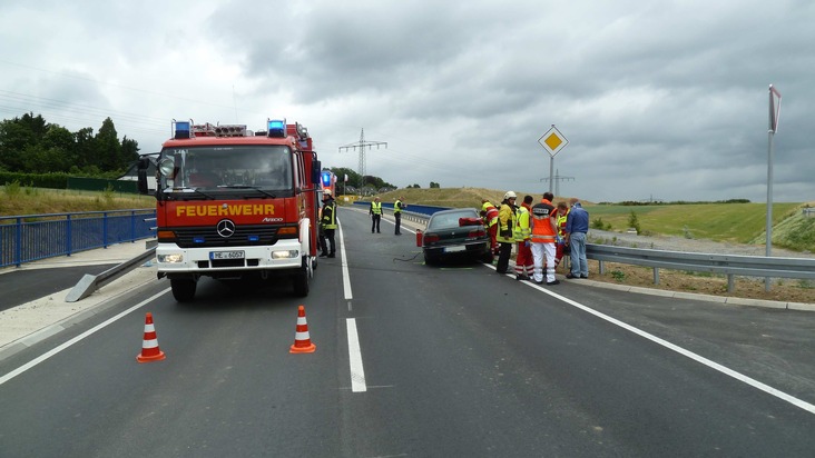 Zu einem Verkehrsunfall wurde die Feuerwehr heute um 15:32 Uhr alarmiert. Aus bisher ungeklärter Ursache geriet ein PKW-Fahrer in Fahrtrichtung Heiligenhaus mit seinem Opel Astra in den Gegenverkehr und rammte hierbei einen entgegenkommenden Opel Omega. Beide Fahrzeuge wurden stark beschädigt und kamen auf der jeweils entgegengesetzten Fahrbahn in der Leitplanke zum Stillstand.
