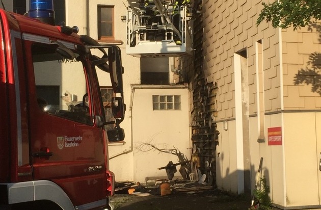 Um 19:25 wurde die Feuerwehr Iserlohn zu einem Feuer in die Unnaer Straße gerufen. Auf der Rückseite eines Wohn- und Geschäftshauses brannte Sperrmüll und weiterer Unrat. Das Feuer hatte bereits auf die Wärmedämmung der Hausfassade übergegriffen. Durch einen zügigen Löschangriff mit einem C-Rohr konnte ein größerer Schaden verhindert werden. Zur Kontrolle der Fassade auf weitere Glut- und Brandnester wurde die Drehleiter eingesetzt. Im Einsatz befanden sich der Löschzug der Berufsfeuerwehr und die Polizei.