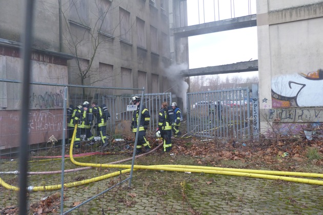 Am heutigen Morgen um 09:36 Uhr wurde das Hauptamtliche Personal der Feuerwehr Detmold zu einer unklaren Rauchentwicklung aus dem Kellerbereich des leer stehenden Temde-Gebäudes an der Bahnhofstraße Ecke Temdestraße gerufen. Nach erster Erkundung der Lage wurden zur Unterstützung die Löschgruppe Hiddesen, der Löschzug Mitte sowie der Rettungsdienst zur Einsatzstelle alarmiert. Die Löschgruppe Pivitsheide brachte sich in Bereitstellung, um den Grundschutz für das Stadtgebiet sicherzustellen. Aus bisher ungeklärter Ursache war im Kellerbereich des ehemaligen Fabrikgebäudes ein Feuer ausgebrochen. Es brannten Unrat und massive Papierstapel. Um die Papierstapel und die darin verborgenen Glutnester besser ablöschen zu können, wurde Schaum eingesetzt. Insgesamt fünf Atemschutztrupps brachten das Feuer letztendlich unter Kontrolle. Des Weiteren wurde der betroffene Gebäudeteil belüftet und nach Personen durchsucht. Gegen 12:30 Uhr konnten die Einsatzkräfte wieder zurück in ihre Standorte fahren. Verletzt wurde niemand.