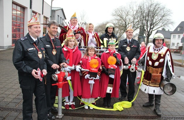 FW-GL: Dreimol "Gläbbisch Alaaf" op de Füürwaach Bergisch Gladbacher Dreigestirne zu Gast bei der Feuerwehr
