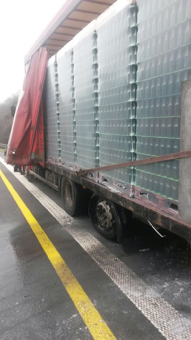 Durch die Kreisleitstelle Mettmann wurde die Feuerwehr Erkrath am Mittwoch, den 25.03.2015 um 11:48 zu einem LKW-Brand auf die BAB 3 kurz hinter dem Autobahnkreuz Hilden in Fahrtrichtung Oberhausen alarmiert. Der Fahrer eines mit leeren Glasflaschen beladenen rumänischen LKW bemerkte während der Fahrt einen brennenden Reifen an der Zugmaschine seines Fahrzeuges und lenkte sein Gefährt auf die künstlich angelegte Standspur im Baustellenbereich der BAB 3. Der LKW-Fahrer und die Besatzung des zufällig an der Einsatzstelle vorbeikommenden Notarzteinsatzfahrzeug der Feuerwehr Ratingen nahmen unverzüglich die mitgeführten Pulverlöscher vor und konnten somit die Flammen rasch niederschlagen. Durch die Einsatzkräfte der Feuerwehr Erkrath wurde umgehend ein Trupp unter umfuftunabhängigen Atemschutz eingesetzt und mit dem Schnellangriff Schaum des Hilfeleistungslöschfahrzeuges konnte der Brand endgültig gelöscht werden. Der Reifen wurde im Anschluss gekühlt und mittels Wärmebildkamera auf mögliche Brandnester hin kontrolliert. Eingesetzt war die hauptamtliche Wache mit vier Fahrzeugen sowie der Rettungsdienst der Feuerwehr Erkrath mit einem Rettungswagen. (M.Steinacker)