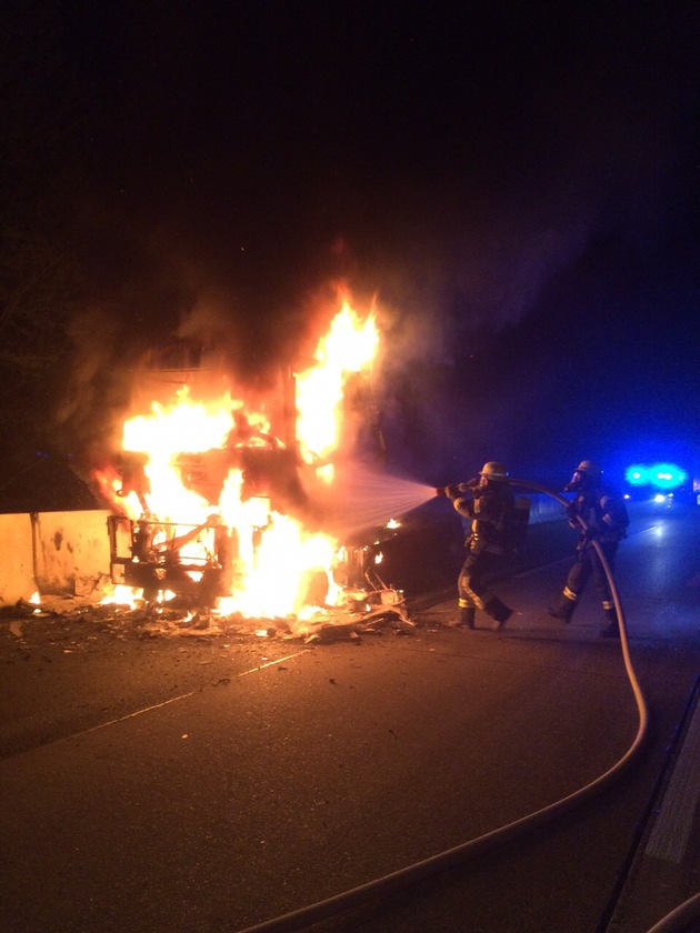 Offenbar in Folge eines technischen Defekts kam es zum Brand der Zugmaschine des mit Papier beladenen Sattelzuges. Entgegen der ersten Meldungen, dass der Brand bereits den Sattelauflieger erfasst hatte, beschränkte sich der Brand auf die Zugmaschine, da der LKW-Fahrer geistesgegenwärtig den Auflieger abkuppeln und somit eine Brandausbreitung verhindern konnte.