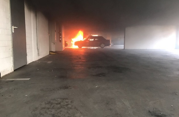 FW-Erkrath: Pkw-Brand in einem Parkhaus