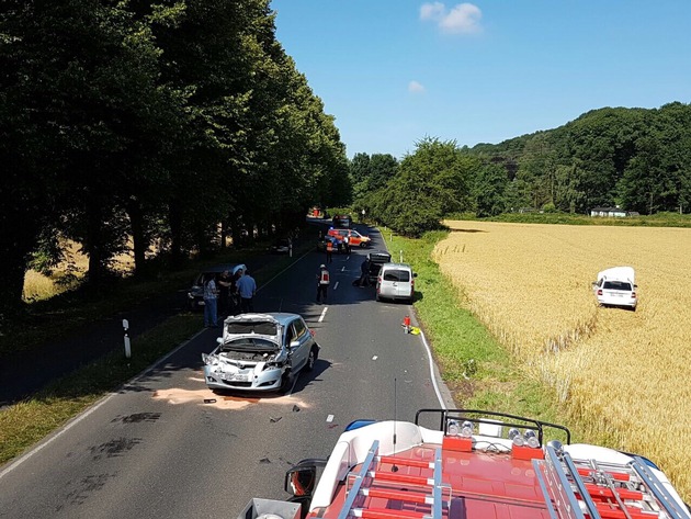 Zu einem schweren Verkehrsunfall auf der Düsseldorfer Straße in Alt-Erkrath, kurz vor der Stadtgrenze zu Düsseldorf, wurde heute Morgen um 09:24 Uhr die Feuerwehr Erkrath alarmiert. Ein Fahrzeug war aus bisher ungeklärter Ursache in den Gegenverkehr geraten und frontal mit einem anderen Fahrzeug zusammengeprallt. An dem Unfall waren insgesamt vier Fahrzeuge beteiligt. Durch den Rettungsdienst der Städte Erkrath und Düsseldorf wurden insgesamt vier leichtverletzte Personen vor Ort versorgt und anschließend in die Krankenhäuser Mettmann und Gerresheim transportiert. Nach Absprache mit der ebenfalls alarmierten Berufsfeuerwehr Düsseldorf erfolgte die Einsatzführung durch die Feuerwehr Erkrath und die Düsseldorfer Einsatzkräfte konnten nach dem Abtransport der Patienten aus dem Einsatz entlassen werden. Durch die Feuerwehr Erkrath wurde die Einsatzstelle bis zur Bergung der Unfallfahrzeuge abgesichert, der Brandschutz sichergestellt sowie auslaufende Betriebsmittel abgestreut. Der Einsatz konnte für die Einsatzkräfte der hauptamtlichen Wachabteilung nach ca. 90 Minuten beendet werden.