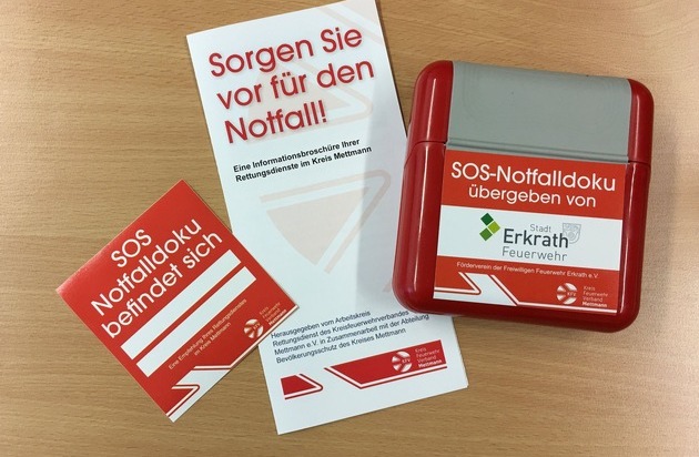 Der Arbeitskreis Rettungsdienst des Kreisfeuerwehrverbandes Mettmann konnte nach einigen Monaten der Abstimmung und Entwicklung im Einvernehmen mit dem Kreis Mettmann als Träger des Rettungsdienstes eine Notfallbox sowie einen einheitlichen Info-Flyer entwickeln, die bereits ab September 2017 im Kreis Mettmann verteilt werden.