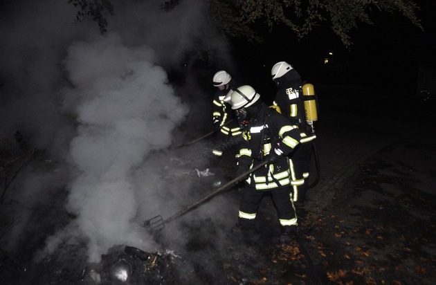 Anwohner hatten den Brand bemerkt, als die Flammen bereits mehrere Meter hoch schlugen und den Notruf gewählt. Um weitere Schäden zu vermeiden, hatten sie noch vor Eintreffen der Feuerwehr weitere Gegenstände aus dem Gefahrenbereich gebracht.