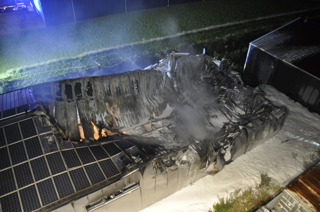 Durch den schnellen Erstangriff und die massive Nachforderung von Einsatzkräften konnte verhindert werden, dass sich der Brand der Halle auf den Bürotrakt sowie auf angrenzende Hallen anderer Gewerbebetriebe ausbreiten konnte.