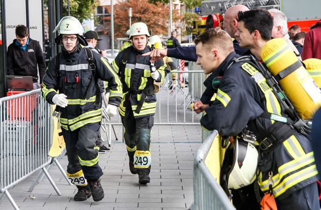 FW-KLE: Bedburg-Hauer Feuerwehrmann Lukas Schiemann beim 9. Skyrun der Feuerwehr Düsseldorf