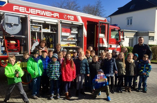 Feuer! Was tun? Mit der Klasse 3c der Gemeinschaftsgrundschule St. Markus - Teilstandort Hasselt - wurde ein erfolgreicher Projekttag "Feuerwehr" mit Brandschutzerziehung umgesetzt.