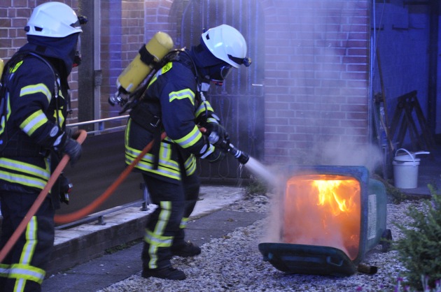 Aus unbekannter Ursache war eine Papiertonne in einer Garage eines sich derzeit im Umbau befindlichen Hauses in Brand geraten. Eine Nachbarin hatte in den Morgenstunden die starke Rauchentwicklung bemerkt und die Feuerwehr alarmiert. Noch vor Eintreffen der Einsatzkräfte hatte sie das verschlossene Garagentor geöffnet.