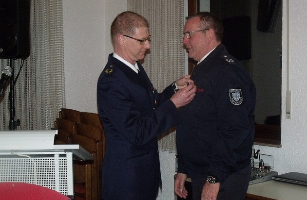 Danach übergab Bernd Löhr das Wort an den stellvertretenden Kreisbrandmeister Werner Franke. Dieser sprach den Angehörigen des Basislöschzugs, auch im Namen des Hochsauerlandkreises, seinen Dank aus und hatte dann noch eine ganz besondere Ehrung im Gepäck: Der stellvertretende Wehrführer der Arnsberger Feuerwehr, Stadtbrandinspektor Martin Känzler wurde in Würdigung seiner hervorragenden Leistungen auf dem Gebiet des Feuerwehrwesens mit dem Deutschen Feuerwehr-Ehrenkreuz in Silber des Deutschen Feuerwehrverbandes ausgezeichnet.