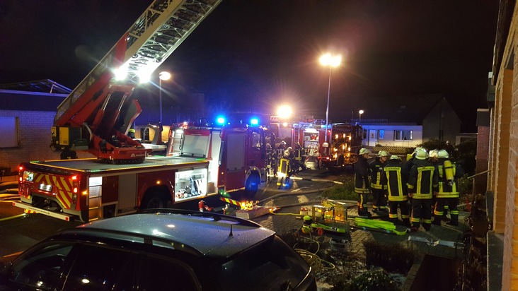 Parallel zum Innenangriff der Feuerwehr wurde die Drehleiter in Stellung gebracht und eine Wasserversorgung aufgebaut. Zwischenzeitlich musste der Innangriff zur Vorsicht der eigenen Kräfte eingestellt werden. Mit einem massiven Löschangriff über die Drehleiter und den rückwertigen Bereich des Hauses wurde der Brand eingedämmt. Diese Maßnahmen zeigten schon nach kurzer Zeit einen gezielten Erfolg und die Löscharbeiten im innern konnten wieder aufgenommen werden.
