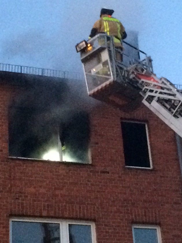 Die Feuerwehr Stolberg wurde am heutigen Morgen um 5.45 Uhr zu einem ausgedehnten Wohnungsbrand in die Schulstraße in der Innenstadt alarmiert. Unter Leitung von Brandinspektor Markus Genter rückten rund 35 Einsatzkräfte der Feuer- und Rettungswache sowie des 2. Löschzuges (Löschgruppen Atsch, Büsbach, Donnerberg, Mitte und Münsterbusch) aus. Bereits auf der Anfahrt war eine deutliche Rauchsäule feststellbar. Beim Eintreffen an der Einsatzstelle schlugen die Flammen meterweit aus einem Fenster im dritten Obergeschoss. Die Bewohnerin der betroffenen Wohnung hatte bereits erste Löschversuche unternommen und sich dabei Brandverletzungen zugezogen. Sie wurde vom Rettungsdienst der Feuerwehr medizinisch versorgt und in ein Krankenhaus transportiert. Weitere Personen waren nicht betroffen. Von den ersten Einsatzkräften wurde sofort ein Löschangriff mit einem C-Rohr unter Atemschutz durch das Treppenhaus vorgenommen. Die Drehleiter wurde in Stellung gebracht. Die Flammen in dem in Vollbrand stehenden Zimmer konnten schnell unter Kontrolle gebracht werden, eine weitere Ausbreitung des Feuers wurde verhindert. Die Nachlösch- und Aufräumarbeiten nahmen noch einige Zeit in Anspruch. Bis gegen 9 Uhr wird eine Brandwache gestellt und dann die Wohnung nochmals mit einer Wärmebildkamera auf eventuelle Glutnester kontrolliert. Die Einsatzstelle wurde der Polizei zu weiteren Ermittlungen übergeben.
