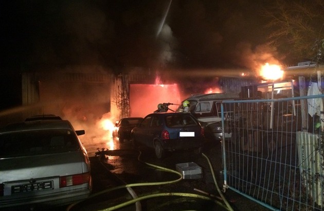 FW-Stolberg: Brand einer Lagerhalle mit Kfz-Werkstatt in voller Ausdehnung