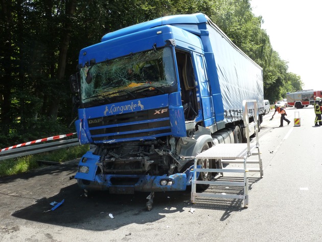 FW Dinslaken: Auffahrunfall zweier LKW mit eingeklemmter Person auf der Autobahn A3