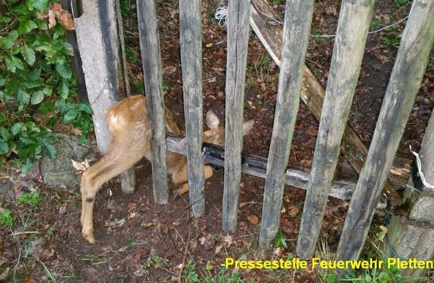 FW-PL: OT-Stadtmitte. Feuerwehr befreit Rehkitz aus Zwangslage