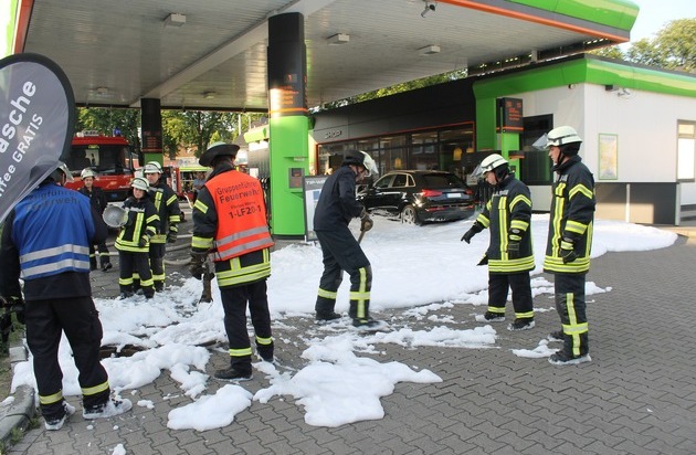 Um 19:26 Uhr wurde der Löschzug 1 Stadtmitte am gestrigen Mittwoch zu einem Technischen Hilfeleistungs-Einsatz alarmiert. An einer ortsansässigen Tankstelle auf der Kamener Straße waren beim betanken eines Audis aus bislang nicht geklärter Ursache größere Mengen Ottokraftstoff ausgelaufen. Dieser Kraftstoff gehört zur Maßnahmengruppe 33 und ist leicht entzündlich mit einem Flammpunkt ab 23°C. Da die Außentemperaturen noch um die 25°C lagen, bestand akute Brandgefahr. Der Löschzug 1 rückte mit 12 Einsatzkräften, einem Einsatzleitwagen (ELW), einem Löschgruppenfahrzeug (LF) und einem Rüstwagen (RW) aus. Um die Brandgefahr zu beheben, wurde der betroffene Bereich mit einen Schaumteppich abgedeckt. Da die Tankstelle über einen Ölabscheider verfügte, war damit zunächst die Gefahr beseitigt. Knapp eine Stunde später kam eine erneute Alarmierung durch die Leitstelle, da beim Verladen des defekten Fahrzeugs erneut größere Mengen an Ottokraftstoff ausliefen, erneut den Hof, diesmal aber auch die Ladefläche des Abschlepp-LKW kontaminierte. Wieder rückten LF und RW aus, um die Brandgefahr zu beseitigen.