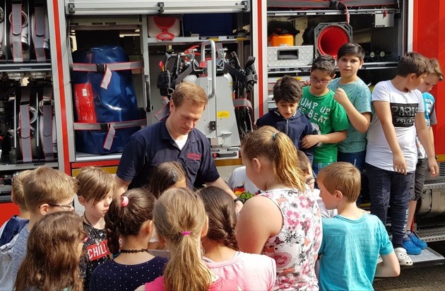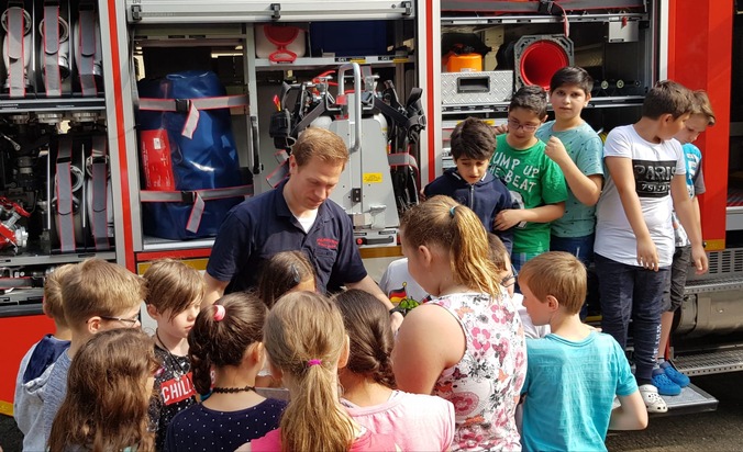 FW-WRN: Brandschutzfrüherziehung in der Werner Wienbredeschule mit der Freiwilligen Feuerwehr Werne