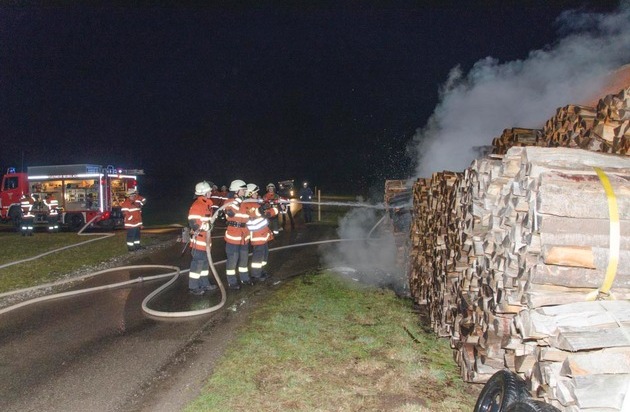 Ein rund 32m³ großer Brennholzstapel hat in Teilen gebrannt. Die Neubulacher Feuerwehr hat durch schnelles auseinanderziehen unter Zuhilfenahme eines Traktors und ablöschen der Brennholzscheite ein Übergreifen des Feuers auf eine Feldhütte verhindert. Es entstand lediglich Sachschaden.
