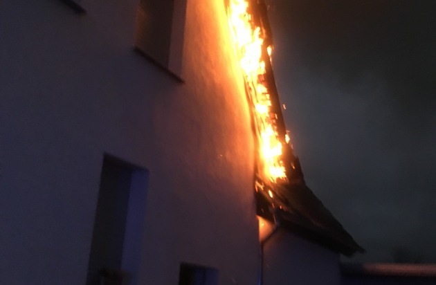 Bei Eintreffen der ersten Einsatzkräfte stellte sich heraus, dass aus bisher ungeklärter Ursache der Dachstuhl eines Wohnhauses in Brand geraten ist.