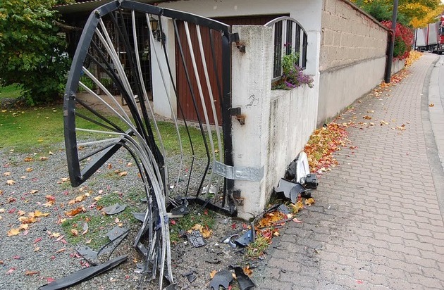 POL-PDKL: PKW zerknittert Eisentor