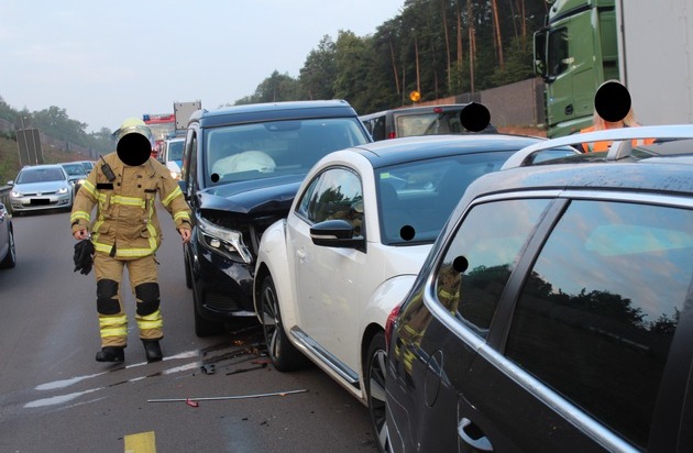 POL-PDKL: A6/Kaiserslautern, 1 Leichtverletzter bei Auffahrunfall mit fünf beteiligten Fahrzeugen
