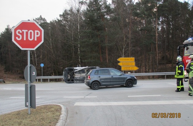 POL-PDKL: Vorfahrtsmissachtung - Pkw liegt auf der Seite - zwei Leichtverletzte