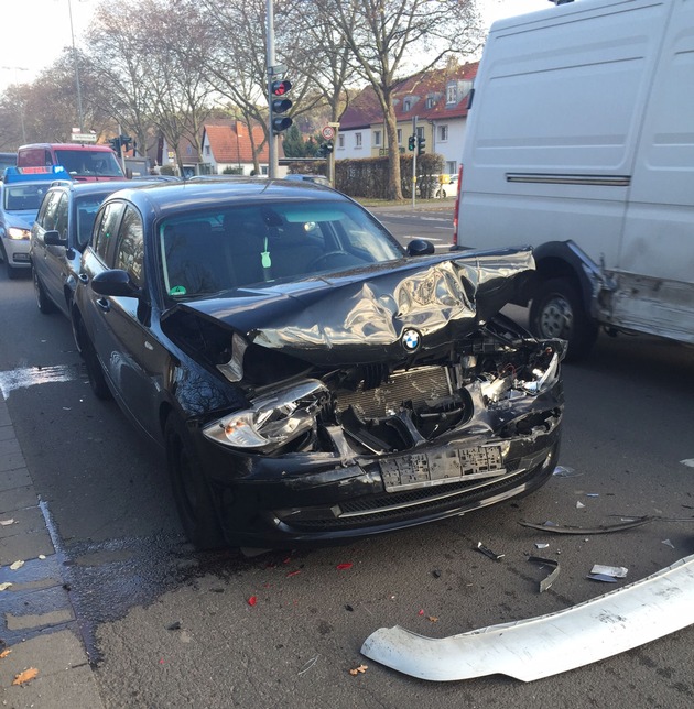 Drei Fahrzeuge waren am Mittwochnachmittag an einem Auffahrunfall in der Pariser Straße beteiligt, bei dem ein Sachschaden von rund 20.000 Euro entstand und ein 53-jähriger Mann leicht verletzt wurde. Die beteiligten Fahrzeuge waren gegen 15 Uhr bei sehr hohem Verkehrsaufkommen im Bereich Bahnheim in Richtung Einsiedlerhof unterwegs, als eine 32 Jahre alte Frau zunächst infolge mangelnden Sicherheitsabstandes auf das vor ihr fahrende Fahrzeug eines 26-jährigen Mannes auffuhr und es auf den Wagen des 53-Jährigen schob. Neben der Polizei war die Feuerwehr im Einsatz und band ausgelaufene Betriebsstoffe.