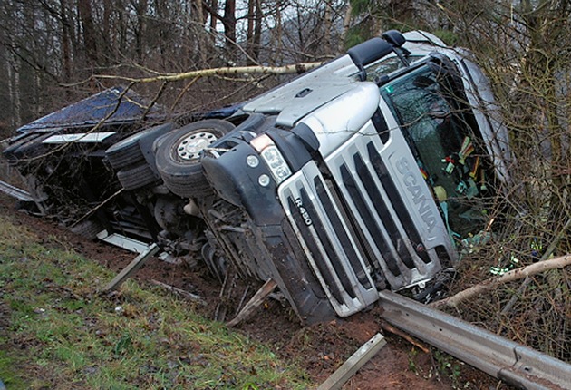 Am Mittwochmittag gegen 14 Uhr fuhr der Sattelschlepper die B 10 von Pirmasens in Richtung Landau. Kurz hinter Wilgartswiesen kam dieser aus noch ungeklärter Ursache nach links von der Fahrbahn ab. Der Lkw kippte in die Böschung und blieb dort schräg auf der Schutzplanke liegen.