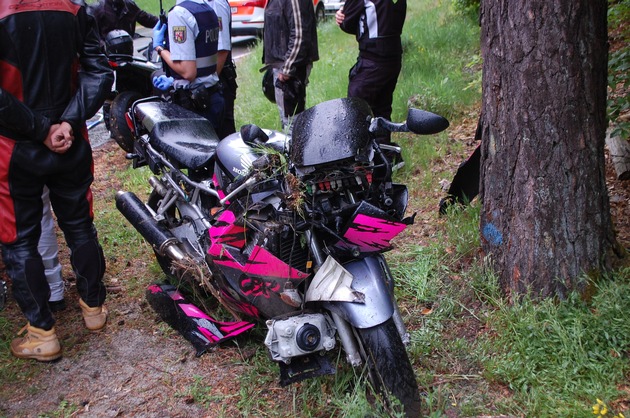 Einen Schutzengel dabei hatte ein 25jähriger Motorradfahrer aus dem Bereich Worms am Sonntagnachmittag auf der B 48. Der Fahranfänger, der erst seit 3 Wochen im Besitz eines Motorradführerscheines ist, kam auf leicht nasser Straße nach rechts von der Fahrbahn ab und fuhr eine neben der Straße ansteigende Böschung hinauf. Dort kam er nach ca. 75 Metern zu Fall und rutschte mitsamt seinem Motorrad über einen geteerten Feldweg, an einem Baum und drei massiven Sandsteinen vorbei, und blieb schließlich verletzt liegen. Ein weiterer Verkehrsteilnehmer, der den Unfall beobachtet hatte, leistete Erste Hilfe. Nach einer ersten Untersuchung durch den Notarzt am Unfallort zog sich der junge Mann lediglich leichte Verletzungen im Schulterbereich zu und wurde ins Krankenhaus verbracht. Ein Rettungshubschrauber, der bereits im Anflug war, konnte seinen Einsatz abbrechen.