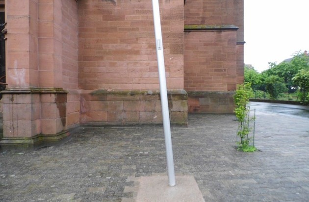 Ein unbekannter Autofahrer hat bereits letzte Woche einen Fahnenmast vor der katholischen Kirche beschädigt. Der Verursacher entfernte sich unerlaubt von der Unfallstelle.