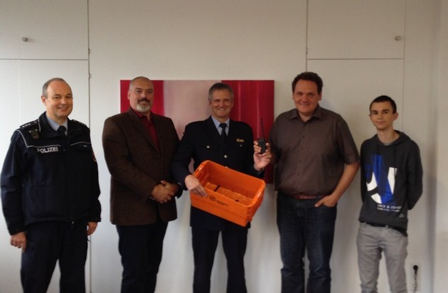 Anfang Juni diesen Jahres wurden bei einem Einbruch in das Freizeitbad "Moby Dick" in Rülzheim mehrere Funkgeräte inkl. Zubehör im Wert von 5000.- EUR gestohlen. Innerhalb weniger Tage konnte der Fall mit Hilfe eines Zeugen durch die Polizei Germersheim gelöst werden. Herr Andreas Wolf, Mitarbeiter der Gemeindewerke Rülzheim, hatte Funksprüche der Täter mitgehört. Da diese sich mit Namen ansprachen, konnten die Beamten acht Jugendliche ermitteln, die den Einbruch begangen hatten. In der weiteren Ermittlungsarbeit kooperierten die meisten Jugendlichen und deren Eltern mit der Polizei. So wurde der größte Teil des Diebesgutes direkt übergeben. Da im Jugendstrafrecht der erzieherische Gedanke im Vordergrund steht, müssen die jungen Leute mit Arbeitsstunden in sozialen Einrichtungen rechnen. Am 23.09.15 wurden die Funkgeräte durch die Polizei an die Verbandsgemeinde zurückgegeben. Verbandsbürgermeister Matthias Schardt nutzte hierbei die Gelegenheit, im Rahmen einer kleinen Feierstunde, seinem Mitarbeiter für die entscheidenden Hinweise zu danken.