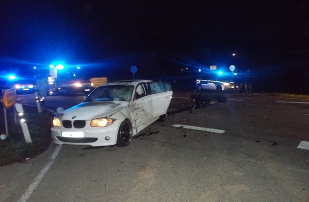 03.11.2016, 05.35 Uhr. Im Kreuzungsbereich L507/K38 kam es zwischen einem 36-jährigen Motorradfahrer aus der Verbandsgemeinde Lingenfeld und einer 34-jährigen Fahrerin eines BMW aus der Verbandsgemeinde Edenkoben zu einem Vorfahrtsunfall, der für den Motorradfahrer tödlich ausging. Die BMW-Fahrerin wollte von Freimersheim in Richtung Zeiskam fahren und übersah den aus Richtung Freisbach kommenden Motorradfahrer. Dieser kollidierte mit ihrer Fahrerseite, als sie die Kreuzung überquerte. Die Frau wurde leicht verletzt und vom Rettungsdienst in ein Krankenhaus gebracht. Die Kreuzung war bis 08.50 Uhr gesperrt.