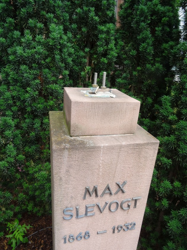 Am 05.06.2018 wurde bemerkt, dass an der Ecke Nordring/Hindenburgstraße auf dem dortigen Schulgelände eine Büste mit dem Kopf von Max-Slevogt entwendet wurde.