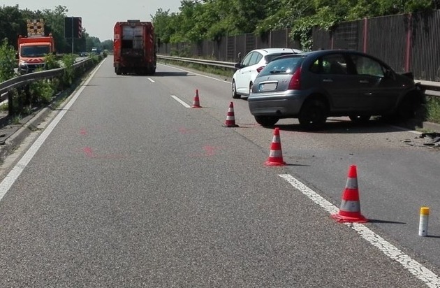 Gegen 10:10 Uhr heute Morgen kam es auf der B9, in Höhe der Anschlussstelle Frankenthal/ Europaring, in Fahrtrichtung Süden, zu einem Verkehrsunfall mit einer leicht verletzten Person. Eine 46- Jährige war im Begriff mit ihrem Pkw von der Anschlussstelle auf die B9 aufzufahren, übersah hierbei jedoch den dort fahrenden, 55- jährigen Pkw- Fahrer. Der 55- Jährige machte mittels Hupen auf sich aufmerksam, so dass die 46- Jährige erschrak und ihr Lenkrad verriss und anschließend die Kontrolle über ihr Fahrzeug verlor. Sie geriet zunächst nach rechts gegen den Randstein und schleuderte anschließend gegen die Mittelleitplanke. Letztlich kam sie wieder auf der rechten Fahrspur, quer zur Fahrbahn zum Stehen. Die Dame erlitt einen leichten Schock. Zu einem Zusammenstoß mit dem 55- jährigen Pkw- Fahrer kam es nicht. Es entstand Sachschaden in Höhe von ca. 4000-5000,-EUR. Zwischen 10:15 Uhr und 10:30 Uhr musste die Fahrbahn in Rtg. Süden voll und bis um 12:35 Uhr teilweise gesperrt werden.