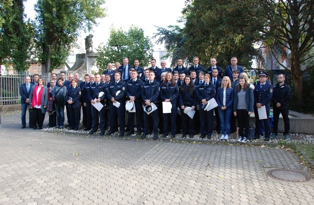 In einer Feierstunde im Rathaus Trier begrüßte Polizeipräsident Lothar Schömann heute Vormittag 24 junge Polizeibeamtinnen und Polizeibeamte, die zum 1. Oktober zum Polizeipräsidium Trier versetz wurden und sieben Tarifangestellte, die in den vergangenen Wochen neu eingestellt werden konnten.