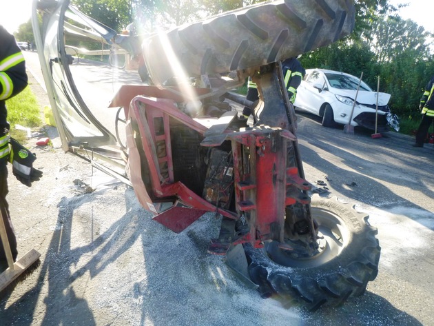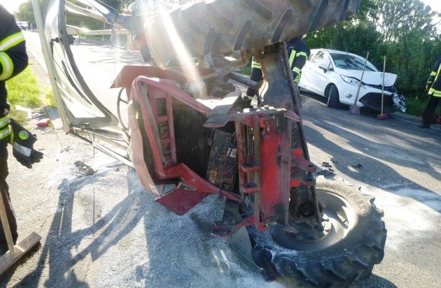 POL-PDWO: Traktor bei Zusammenstoß mit PKW umgekippt - Fahrer schwer verletzt