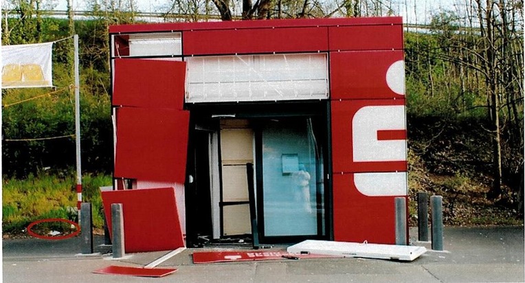 Noch unbekannte Täter haben in den frühen Morgenstunden des 11.April 2016 einen Geldautomaten in Bad Sobernheim, Monzinger Straße, neben der ARAL-Tankstelle, gesprengt.