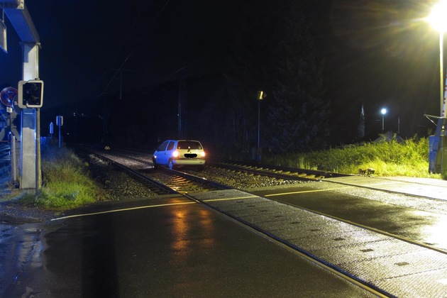 Eine 45 jährige PKW Fahrerin befuhr am Samstag, 07.10.2017, 20:00 Uhr, die Bahnhofstraße aus Richtung Brachbach kommen in Richtung Mudersbach. An dem dortigen Bahnübergang, welcher im 90 Grad Winkel links überquert und der Straße im Anschluss wieder im 90 Grad Winkel gefolgt werden muss, bog die Fahrerin, als sie sich noch auf dem Übergang befand, zu früh nach rechts ab und geriet mit ihrem Wagen ins Gleisbett. Der Zugverkehr konnte rechtzeitig gestoppt werden, so das keine weitere Gefahr von dem PKW ausging.