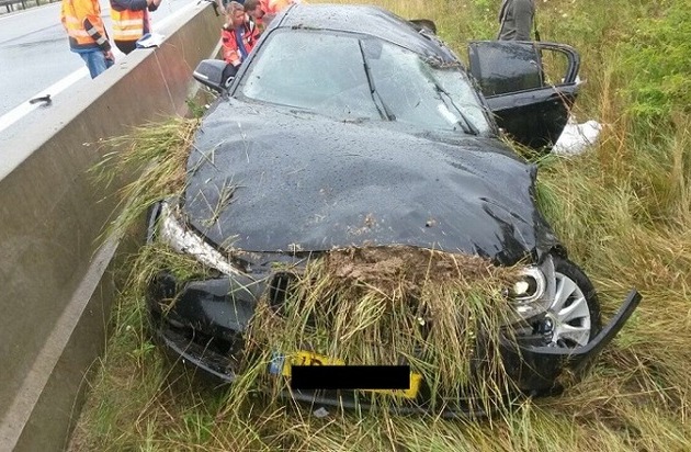 Am 25.07.17 gegen 14:55 h kam es zu einem folgenschweren Verkehrsunfall auf der B 50 im Bereich Kirchberg. Eine in den Niederlanden wohnhafte Familie war auf dem Weg zum Flughafen Hahn und befuhr die B 50 aus Richtung Kirchberg kommend. Der für fünf Personen ausgelegte BMW war mit sechs Personen besetzt. Zwischen den Abfahrten Kirchberg und Nieder Kostenz verlor die 21 jährige Fahrzeugführerin, vermutlich aufgrund nicht angepasster Geschwindigkeit auf regennasser Fahrbahn, die Kontrolle über den von ihr geführten PKW und kam nach rechts von der Fahrbahn ab. Hier gab es eine starke Kollision mit einem Erdvorsprung, wodurch das Fahrzeug gedreht wurde und letztlich einen seitlichen Einschlag in eine Betonbegrenzungsmauer. Die Fahrerin wurde durch den Zusammenprall schwer verletzt. Die in der 32. Woche schwangere Mutter der Fahrerin, die sich im Fahrzeug hinten links befand, erlitt durch die Kollision schwerste Kopfverletzungen. Die vier weiteren Fahrzeuginsassen wurden leicht verletzt. Die schwerstverletzte Mutter wurde mittels Rettungshubschrauber in die Universitätsklinik Mainz verbracht. Die Fahrzeugführerin und die vier weiteren Fahrzeuginsassen wurden der Hunsrückklinik Simmern zugeführt und dort stationär aufgenommen. Es entstand Sachschaden von ca. 15000 Euro. Die B 50 war über mehrere Stunden in Fahrtrichtung Flughafen komplett gesperrt. Die Ermittlungen zur genauen Unfallursache dauern an. In diesem Zusammenhang sucht die Polizei Simmern Zeugen des Verkehrsunfalls. Sie werden gebeten, sich unter der Telefonnummer 06761/9210 bei der Polizei in Simmern zu melden.