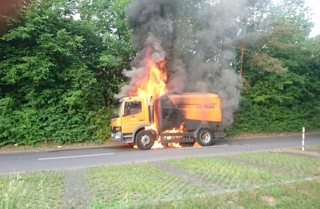 FW Menden: Brennende Kehrmaschine sorgt für Feuerwehr-Einsatz