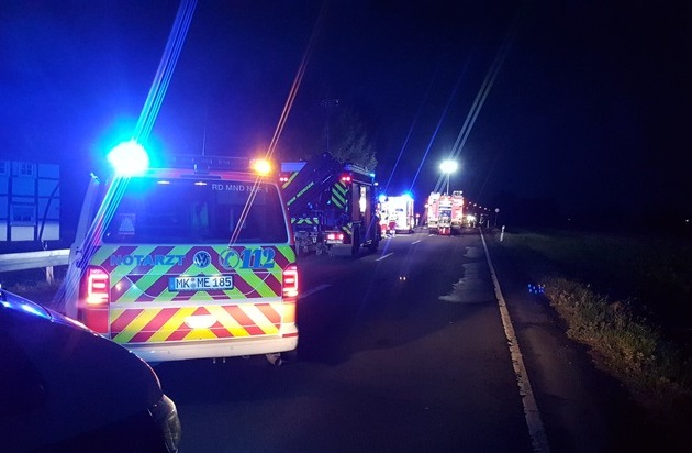 Die Provinzialstraße zwischen Bösperde und Halingen musste für knapp eine Stunde voll gesperrt werden, Feuerwehr und Rettungsdienst Menden waren mit rund 30 Einsatzkräften vor Ort.