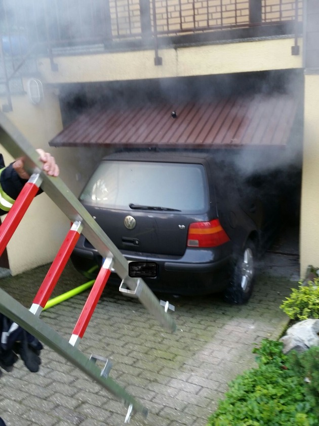 FW-RE: Brennender PKW in Garage eines Wohnhauses