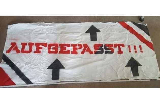 Autofahrer entdeckten die ca. 2,20 mal 1,00 Meter großen Transparente am Montagmorgen (11.04.16) gegen 06.40 Uhr und informierten die Polizei. Wie schon in den Fällen zuvor, waren die Stofftücher mit Kabelbindern an den Brückengeländern befestigt. Aufgedruckt waren dieses Mal die Worte: "Nein! Auf die Straße reiht Euch ein!!!", "Aufgepasst!!!" und "Zwangskultur für uns und unsere Kinder???".