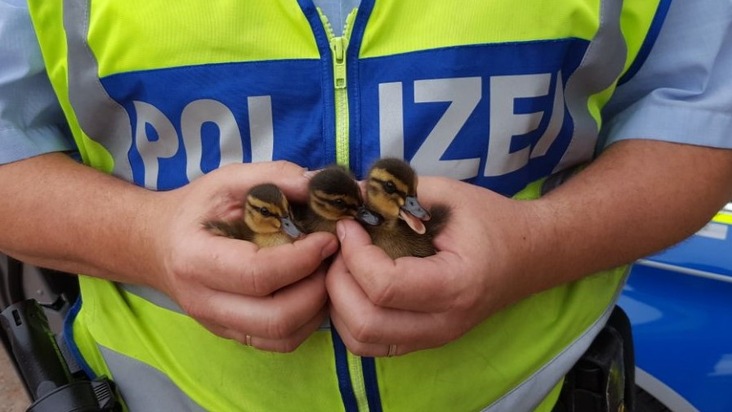 POL-D: Düsseldorf - A 46 - Entenfamilie unternimmt Ausflug - Polizei nimmt Entenmama und drei Küken kurzzeitig "in Gewahrsam" - Familie nun wieder in sicheren Gefilden unterwegs